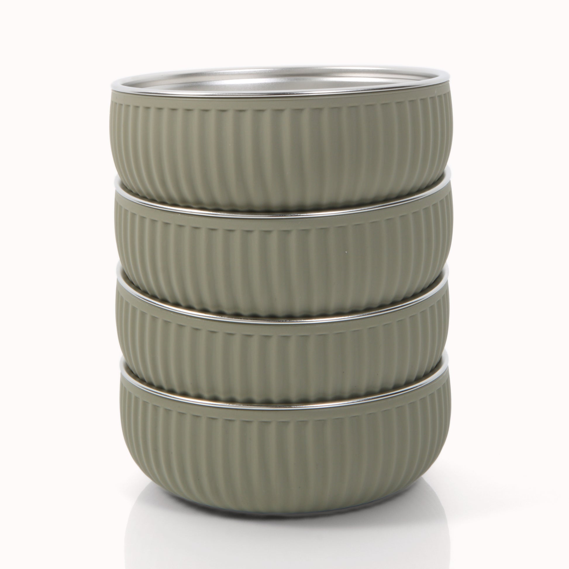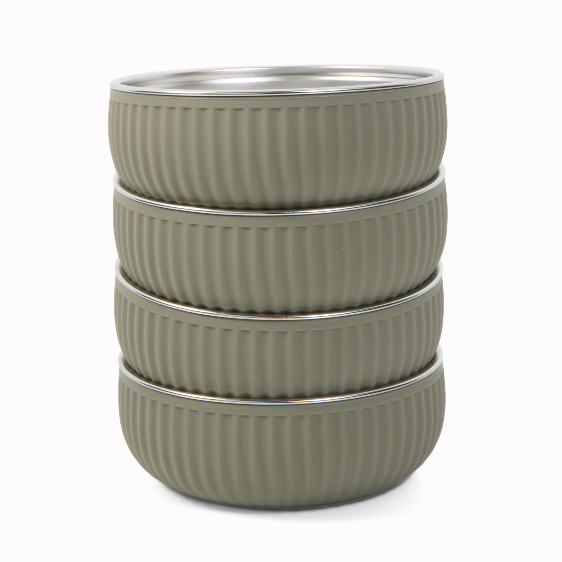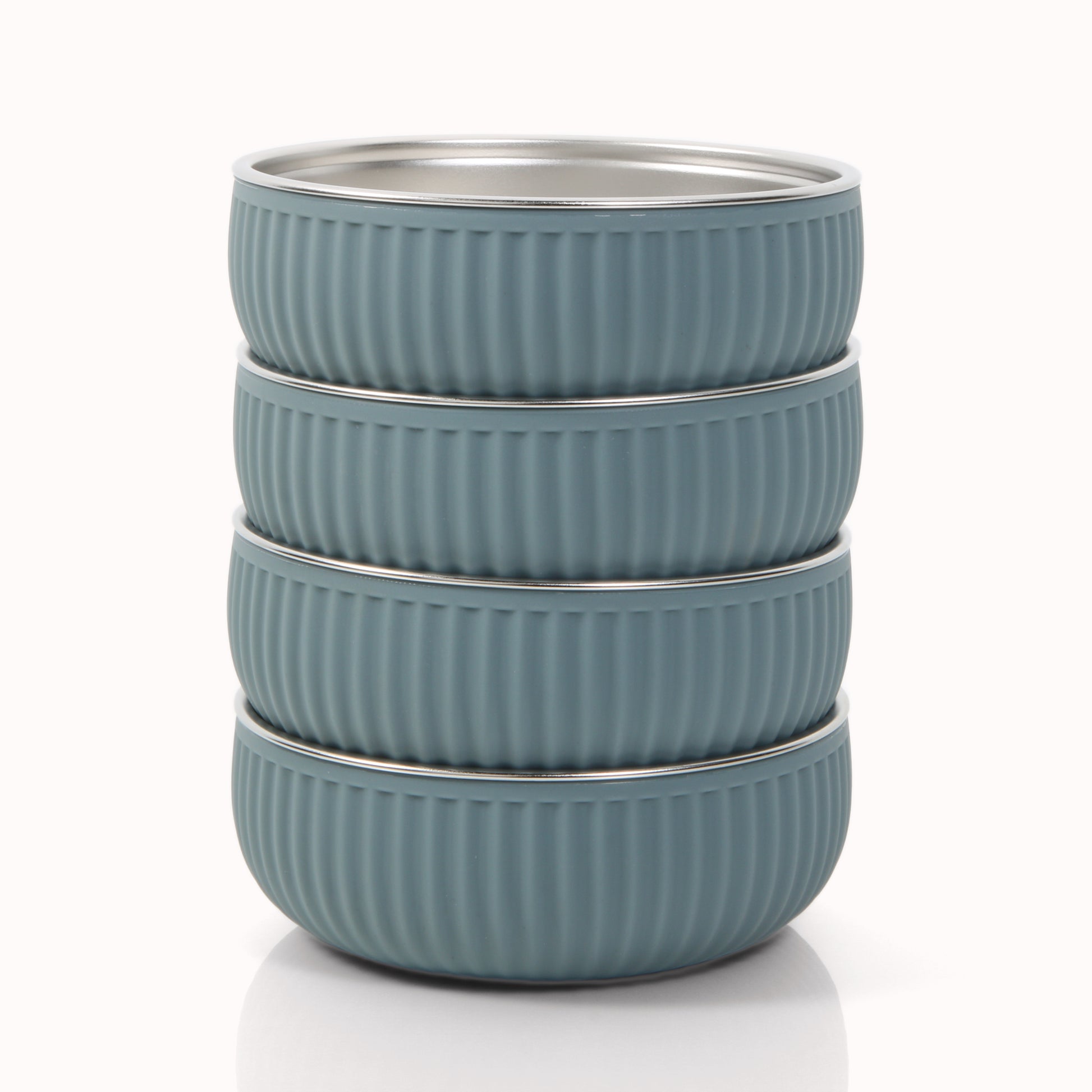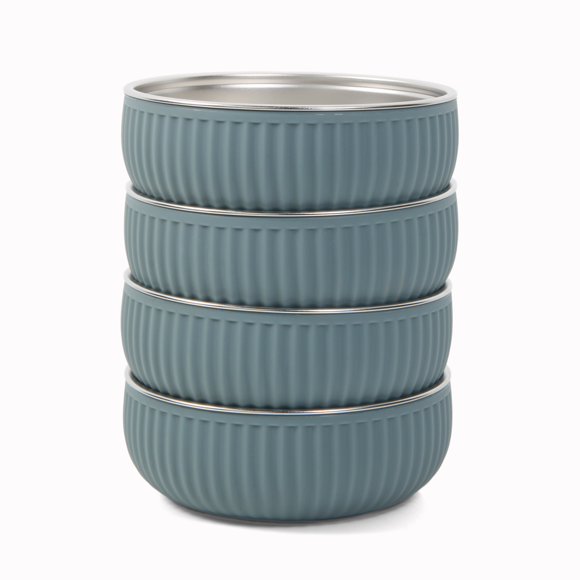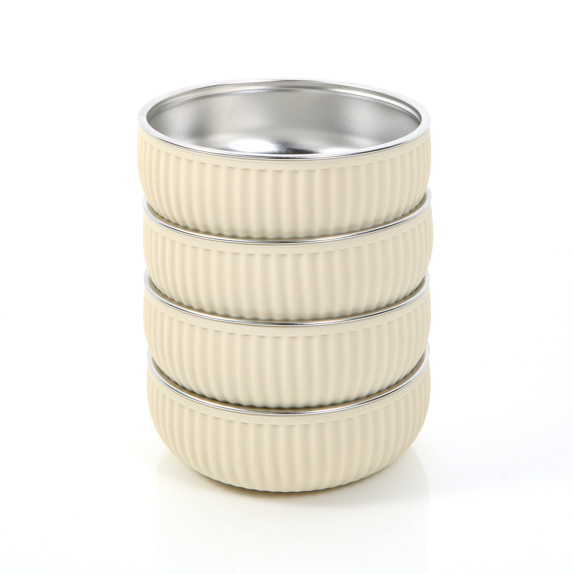 - What’s Included: This set includes 4 stainless steel bowls with non-slip silicone coating. Width 5”, Height 1.7”